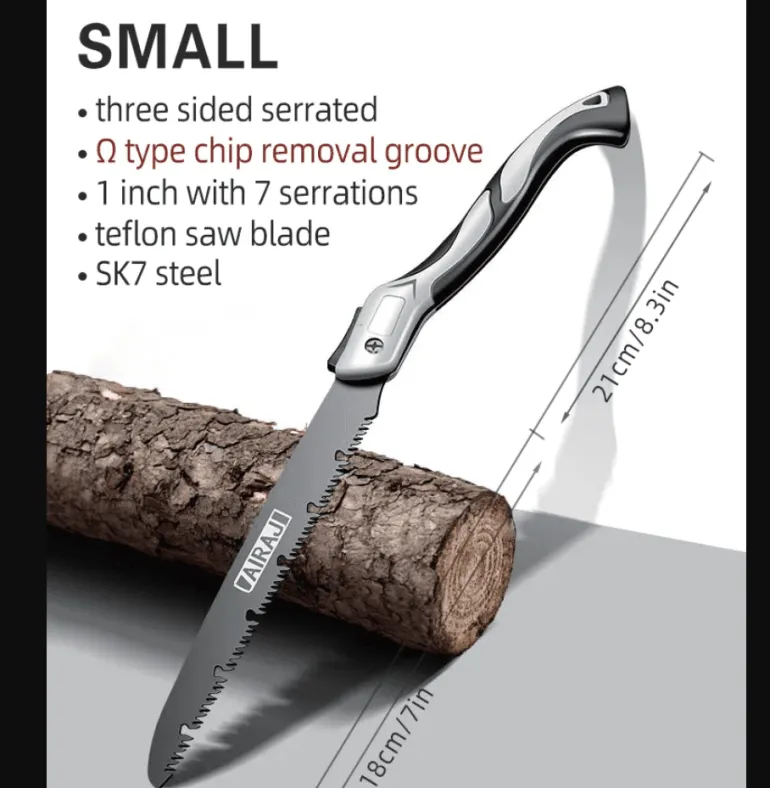 Entdecken Sie die Vielseitigkeit dieser tragbaren, zusammenklappbaren Handsäge – ein unverzichtbares Werkzeug für Holzbearbeitungs-, Camping- und Bastelbegeisterte. Die Säge ist sowohl tragbar als auch effizient und verfügt über ein scharfes, langlebiges Sägeblatt, das sich nahtlos in den Griff einklappen lässt und so die Aufbewahrung und den Transport erleichtert. Ob Sie Holzarbeiten durchführen oder Outdoor-Aktivitäten wie Camping genießen – diese Handsäge eignet sich perfekt zum Sägen von Holz, zum Entfernen von Ästen oder zum Sammeln von Brennholz. Dank ihres leichten Designs passt sie bequem in Ihre Werkzeugtasche oder Ihren Rucksack, sodass Sie für alle anfallenden Schneidarbeiten gerüstet sind.