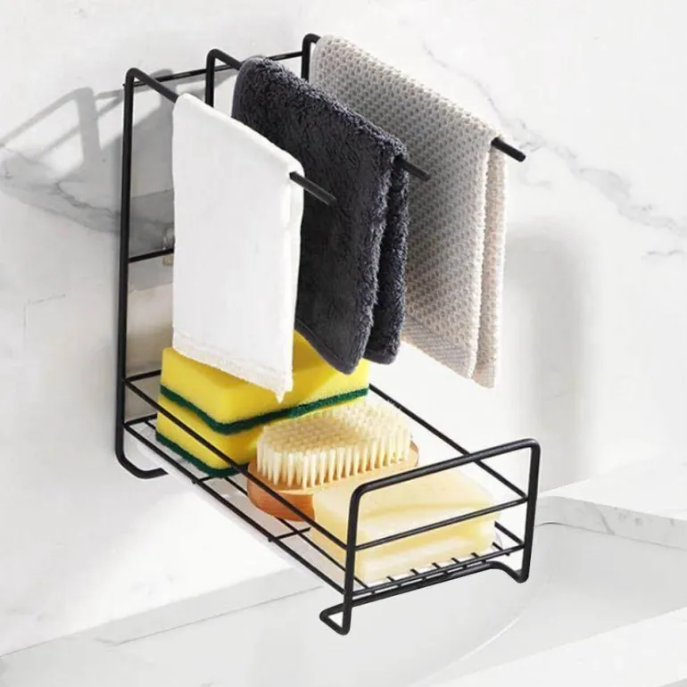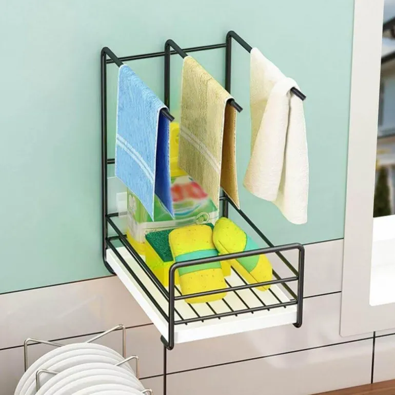 Zu den Hauptmerkmalen dieses Trockengestells gehören seine feuchtigkeits- und ölabweisenden Eigenschaften, die Rost verhindern und eine lange Lebensdauer gewährleisten. Das belüftete Design fördert eine effektive Entwässerung und reduziert das Risiko von Bakterienwachstum. Mit einer zentralen Aufbewahrungslösung können Sie Lappen und Schwämme geordnet aufhängen und so Ihre Küche effizienter gestalten.