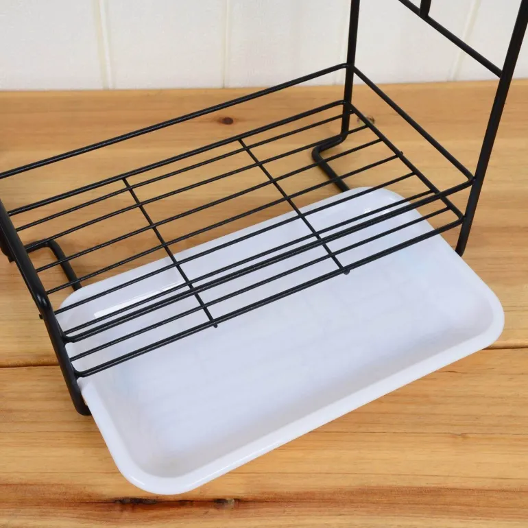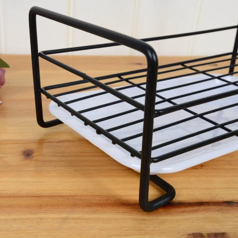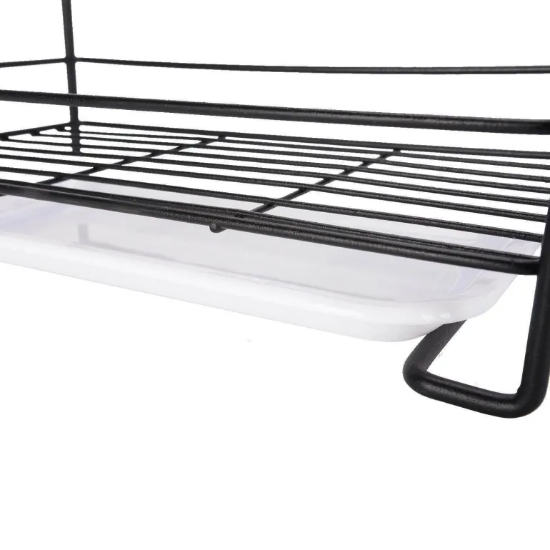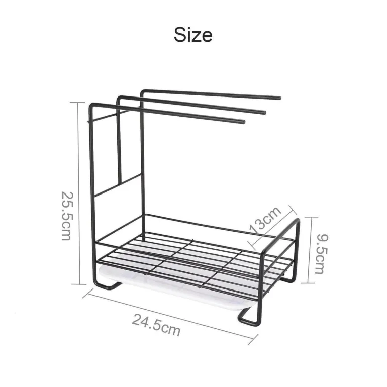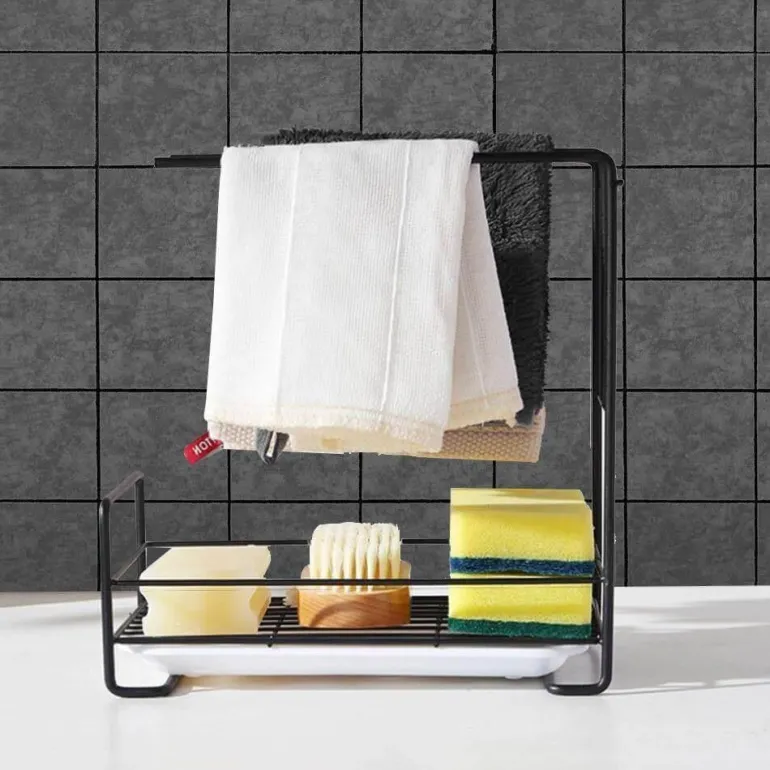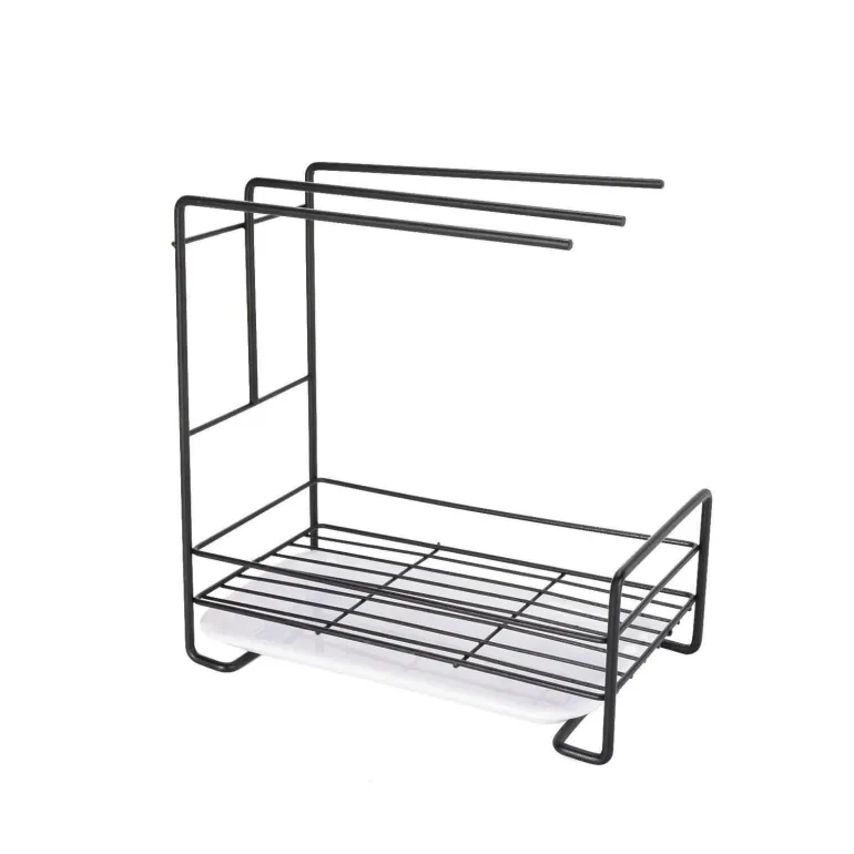 Dieses kompakte Abtropfgestell ist die perfekte Lösung zum effektiven Trocknen und Aufbewahren verschiedener Küchenutensilien wie Schwämmen, Spülbürsten, Spülschüsseln, Seifenstücken und Flüssigseife. Hergestellt aus robustem Kohlenstoffstahl in elegantem Schwarz, vereint dieses platzsparende Abtropfgestell Funktionalität mit einem Hauch von modernem Dekor.