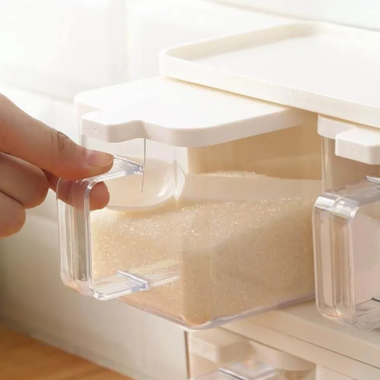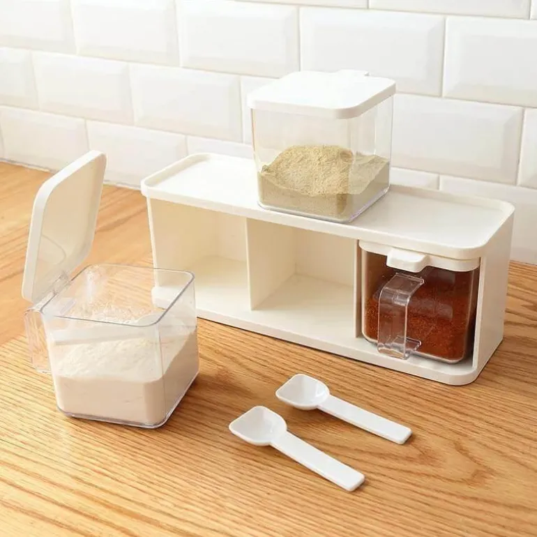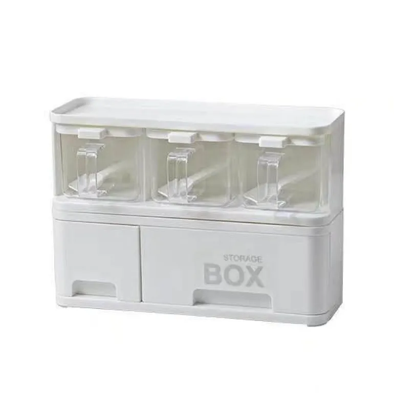 Das Set enthält drei kompakte Boxen, die jeweils für drei verschiedene Gewürzsorten konzipiert sind und so eine vielseitige Ergänzung für Ihre Kochroutine darstellen. Das stapelbare Design nutzt den vertikalen Raum effizient aus und sorgt für Ordnung auf Ihrer Arbeitsfläche, da verschiedene Flaschen und Dosen ordentlich untergebracht werden können.