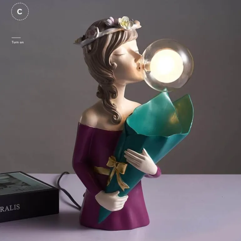 Erhellen Sie Ihren Wohnraum mit unserer kreativen Harz-Tischlampe – ideal für Kinderzimmer und stilvolle Wohnbereiche. Mit verspielten Motiven eines entzückenden Eichhörnchens und eines skurrilen Seifenblasenmädchens bringt diese Lampe ein charmantes Element der Kreativität in Ihre Wohnkultur.