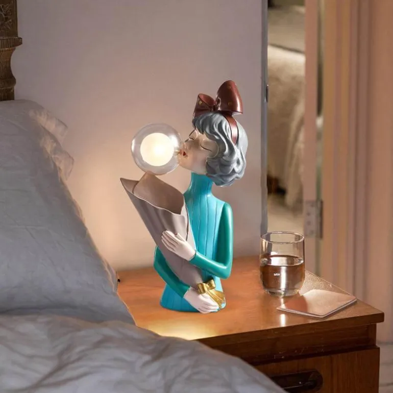 Diese Lampe aus robustem Harz und elegantem Glas vereint Funktionalität und künstlerischen Reiz. Mit den Maßen 20 cm x 20 cm x 38 cm (Bubble Girl) und 25 cm x 25 cm x 25 cm (Eichhörnchen) ist sie eine attraktive Ergänzung für Nachttische oder als Akzentstück in jedem Raum.
