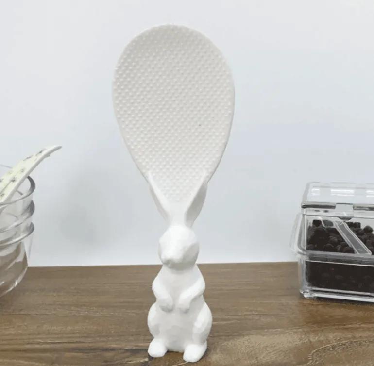 Der Creative Rabbit Reislöffel ist ein einzigartiges Kochutensil, das Ihr Kocherlebnis bereichert. Mit seinem verdickten, verbrühungshemmenden Griff liegt dieser Reislöffel beim Kochen sicher und bequem in der Hand. Dank seines charmanten dreidimensionalen Standdesigns kann der Löffel aufrecht stehen und ist somit eine ästhetisch ansprechende und funktionale Ergänzung für Ihre Küche.