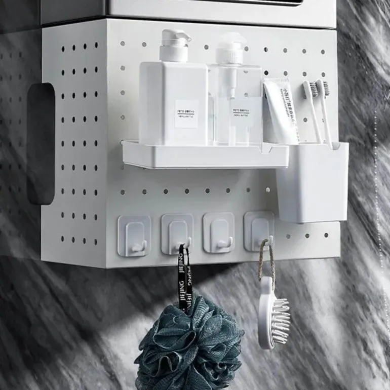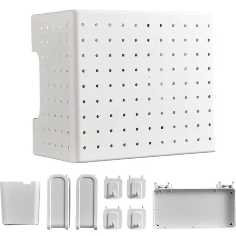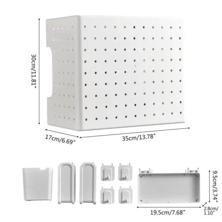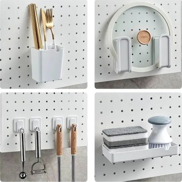 Revolutionieren Sie Ihre Küchenorganisation mit unserem wandmontierten Lochwandregal. Es wurde durchdacht entwickelt, um Platz zu optimieren und die Effizienz zu steigern. Das vielseitige Lochwand-Layout ermöglicht individuelle Aufbewahrungslösungen und erleichtert das Ordnen von Werkzeugen, Utensilien und anderen Küchenutensilien in Reichweite. Durch die Nutzung des vertikalen Wandraums reduziert dieser Organizer effektiv Unordnung auf Arbeitsplatten und in Schubladen und sorgt für eine aufgeräumte, einladende Küchenatmosphäre.