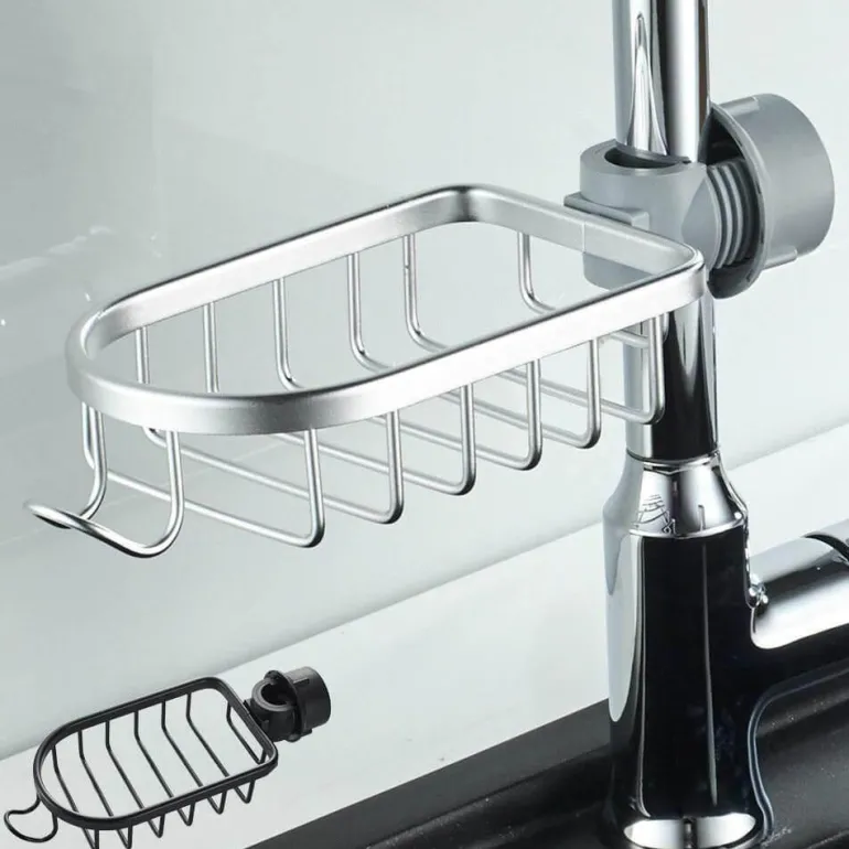 Dieser Organizer bietet zwei vielseitige Montagemöglichkeiten: Er lässt sich sicher am Wasserhahn befestigen, optimiert so den Platz in der Spüle und verbessert die Funktionalität Ihrer Küche. Alternativ kann er mit einem Klebehaken an glatten Oberflächen befestigt werden.