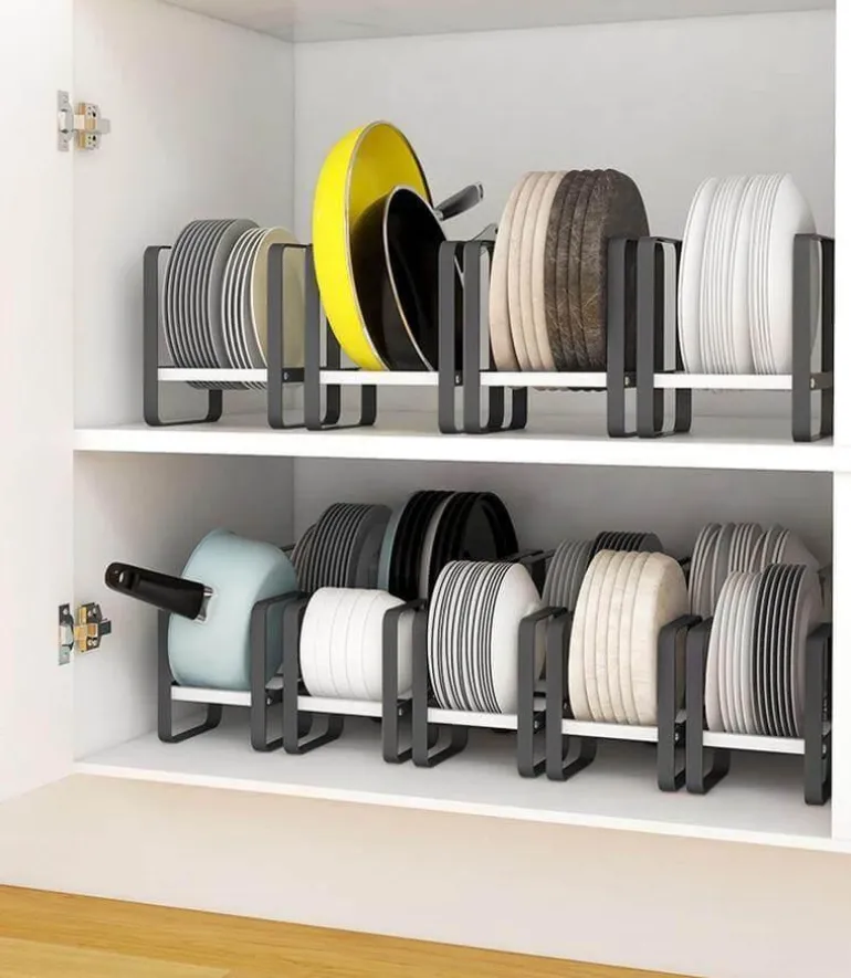 Dieser Organizer bietet viel Platz und hält Teller und Schüsseln sicher und sorgt für eine aufgeräumte Küche. Die rutschfesten Silikonpads am Boden sorgen für Stabilität und verhindern ungewolltes Verrutschen während des Gebrauchs.