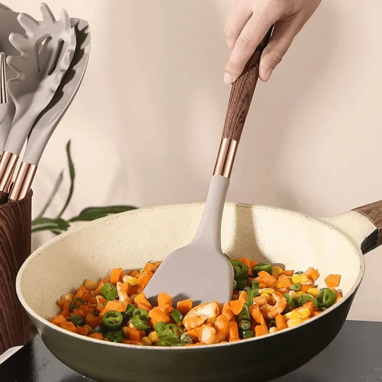 Erleben Sie müheloses Kochen mit unserem Silikon-Küchenhelfer-Set – für ein nahtloses, anhaftendes Erlebnis bei Ihren kulinarischen Abenteuern. Diese Utensilien aus hitzebeständigem Silikon sorgen dafür, dass Sie kochen können, ohne Angst vor Schmelzen oder Anhaften zu haben. Sie sind die ideale Wahl für jede Küche.