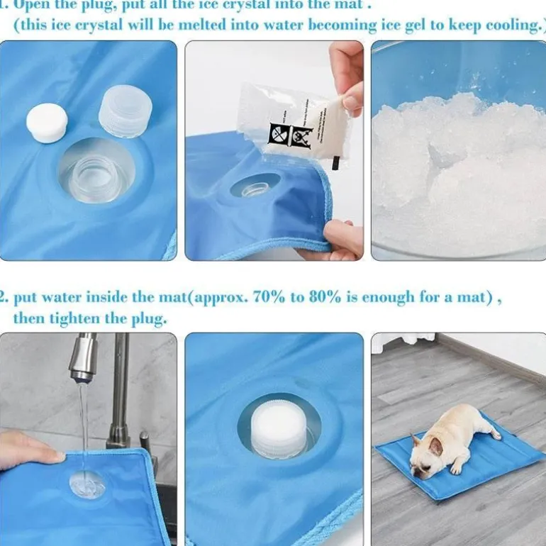 Diese Kühlmatte aus strapazierfähigem Polyester und Oxford-Material ist leicht und lässt sich überall im Haus platzieren. Sie eignet sich für Haustiere unterschiedlicher Größe und trägt ein Gewicht zwischen 230 und 600 g, sodass jedes Tier von ihrer wohltuenden Wirkung profitieren kann.