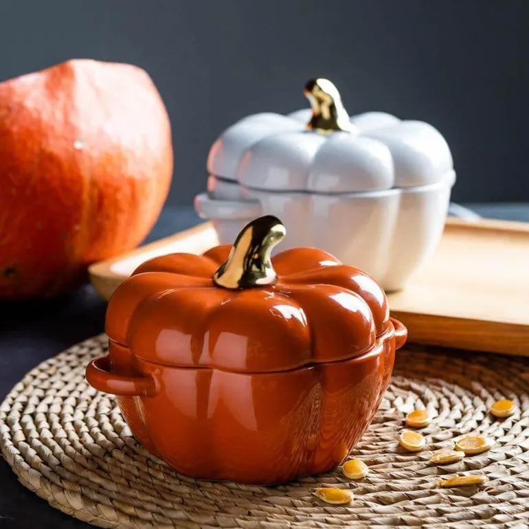 Entdecken Sie die praktische und praktische Funktion dieser charmanten Backschüssel in Kürbisform, die perfekt zu Ihrer herbstlichen Küchendekoration passt. Die aus hochwertiger Keramik gefertigte Schüssel besticht nicht nur durch ihr stilvolles Design, sondern eignet sich auch ideal zum Servieren direkt bei Ihren Zusammenkünften und Feiern.