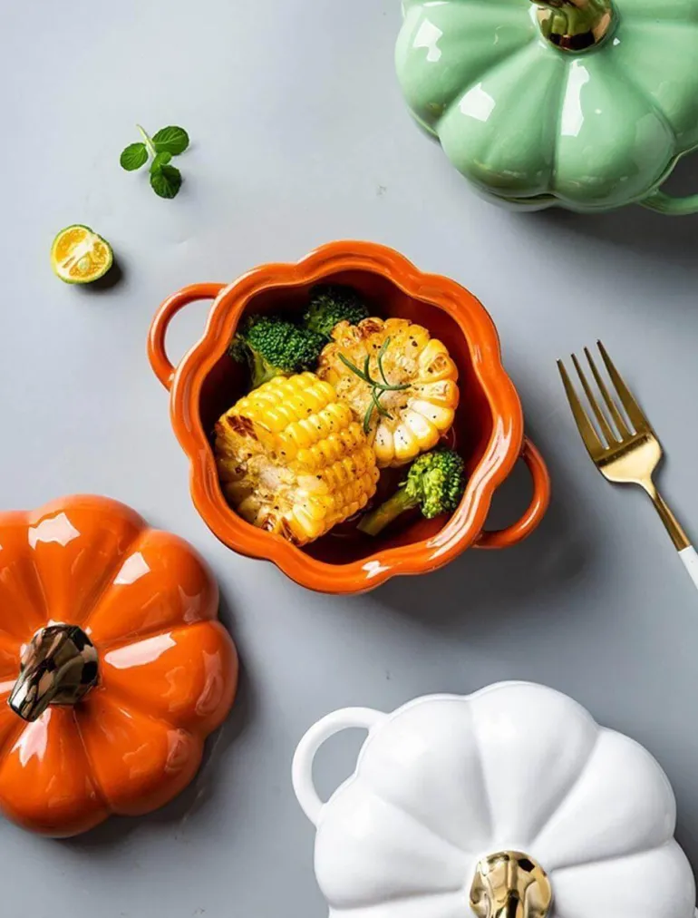 Die exquisite Kürbisform unterstreicht die festliche Atmosphäre Ihrer Partys und Feiertage und macht sie zu einer reizvollen Ergänzung Ihrer Tischdekoration. Mit zwei Griffen, die das Verbrennungsrisiko minimieren, gewährleistet diese Backschüssel sowohl Sicherheit als auch Zuverlässigkeit bei der Verwendung.