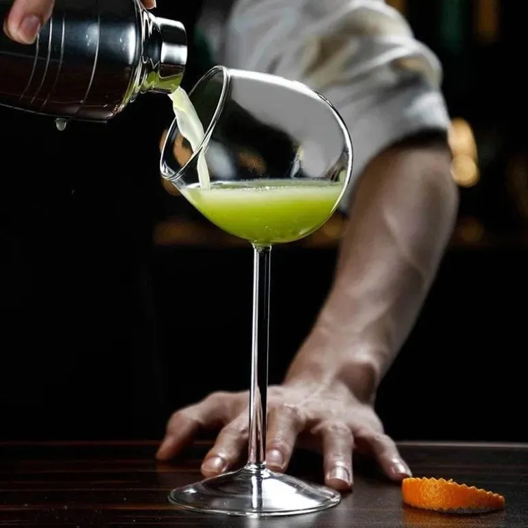 Mit seinem einzigartigen und auffälligen Design unterstreicht dieses Glas die Ästhetik jedes Anlasses und ist ein markantes Herzstück, das Ihrem Tisch Eleganz verleiht. Seine kristallklare Konstruktion lässt die leuchtenden Farben Ihrer Lieblingscocktails oder Ihres Molekularweins zur Geltung kommen und bereichert das visuelle Erlebnis Ihrer Getränke. Dank seiner umweltfreundlichen Eigenschaften können Sie Ihre Getränke genießen und gleichzeitig die Umwelt schonen.