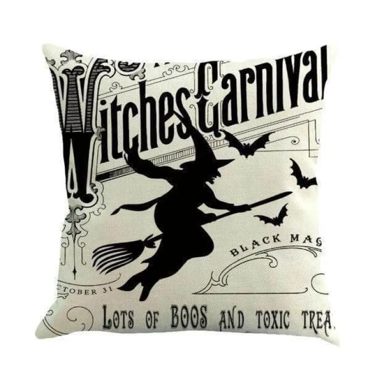Verleihen Sie Ihrem Zuhause mit diesen gemütlichen Kissenbezügen mit Hexenmotiven einen Hauch von Halloween-Charme. Jeder handgefertigte Bezug ist aus weichem Baumwollleinen gefertigt und bietet Komfort und Stil. Diese Kissenbezüge sorgen für einen einladenden Halloween-Look und sind ideal, um die Jahreszeit zu feiern.