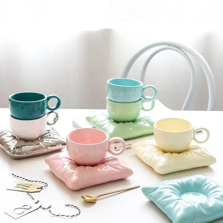 Die bezaubernden bonbonfarbenen Tassen bestechen durch ihr unverwechselbares Kissenuntersetzer-Design, das ihnen eine verspielte Note verleiht. Dank der breiten und glatten Öffnungen gelingt das Ausgießen mühelos und ohne Kleckern. Dieses Tassenset ist ein ideales, personalisiertes Geschenk für Freunde und Familie und passt zu jedem Anlass.