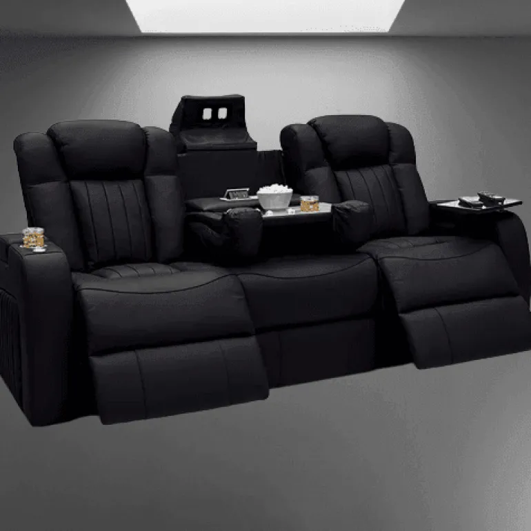 Experience the perfect blend of comfort and style with our luxurious leather electric power reclining cinema sofa. Crafted with genuine leather upholstery, this sofa invites you to sink in and indulge while enjoying your favorite films. The easy-to-use electric power reclining mechanism allows you to effortlessly find your ideal viewing angle, providing a customized experience every time.