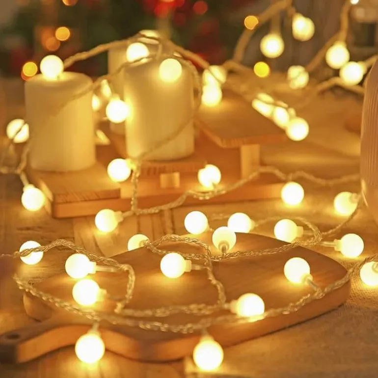 Schaffen Sie mit unseren LED-Kugellichterketten für den Innen- und Außenbereich eine warme und einladende Atmosphäre in jeder Umgebung. Die charmanten, dekorativen Kugelbirnen strahlen ein sanftes, warmes Licht aus, das Ihre Umgebung sanft verschönert und so für eine wohltuende Atmosphäre sorgt.