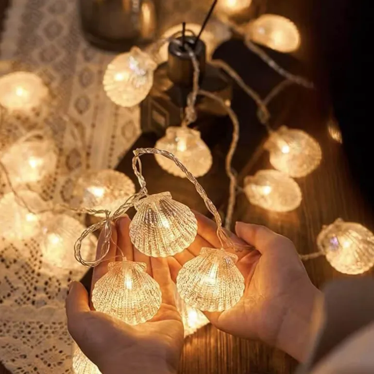 Mit einer Länge von 3 Metern und 20 bezaubernden Glühbirnen eignet sich diese Lichterkette ideal für festliche Anlässe, gemütliche Zusammenkünfte oder einfach zur Verschönerung Ihres Alltags. Für ein einzigartiges und individuelles Ambiente kombinieren Sie sie mit unseren Rattan-Lichterketten oder bunten Halloween-Lichterketten. Erhellen Sie Ihren Raum mit diesen vielseitigen und einladenden LED-Muschellichtern – perfekt für eine einladende Atmosphäre.