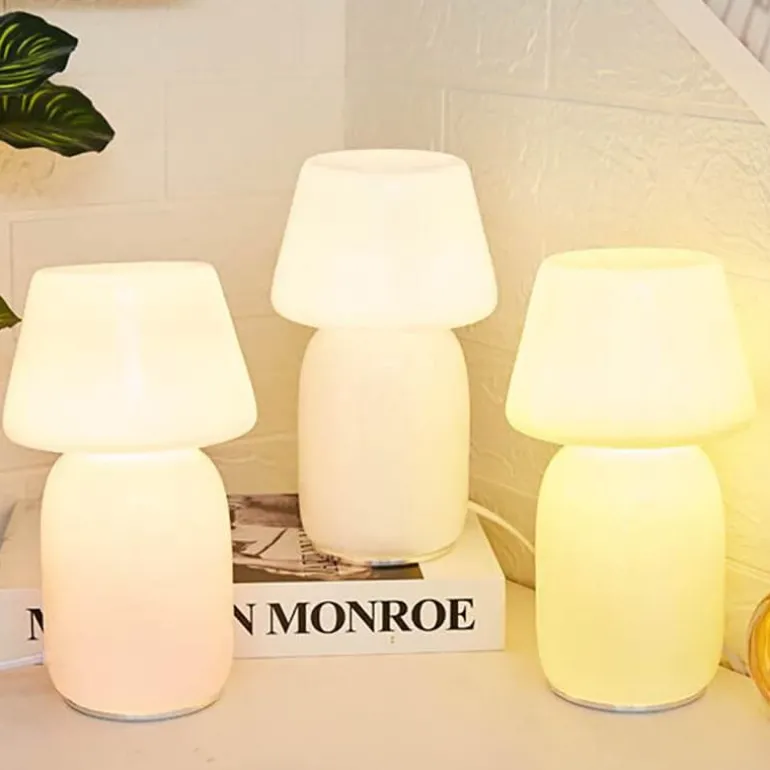 Verschönern Sie Ihren Wohnraum mit der charmanten Glas-Nachtlampe Tilted Mushroom. Diese sorgfältig aus mundgeblasenem Glas gefertigte Lampe besticht durch ihre faszinierende Silhouette und ihre strukturierte Oberfläche, die das Licht wunderschön einfängt und reflektiert und so atemberaubende Farbverläufe in Ihrer Umgebung erzeugt. Als dekoratives LED-Akzentlicht verleiht sie jedem Raum einen unverwechselbaren Charakter und sorgt für ein warmes und einladendes Licht.