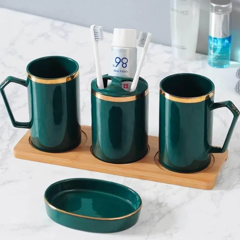 The elegantly simple design of this set is crafted to harmonize with various bathroom styles, seamlessly blending contemporary aesthetics with practical functionality. Whether you’re dispensing your luxurious lotion or elegantly storing your toothbrush after maintaining that brilliant smile, this set provides a balanced combination of convenience and timeless charm.