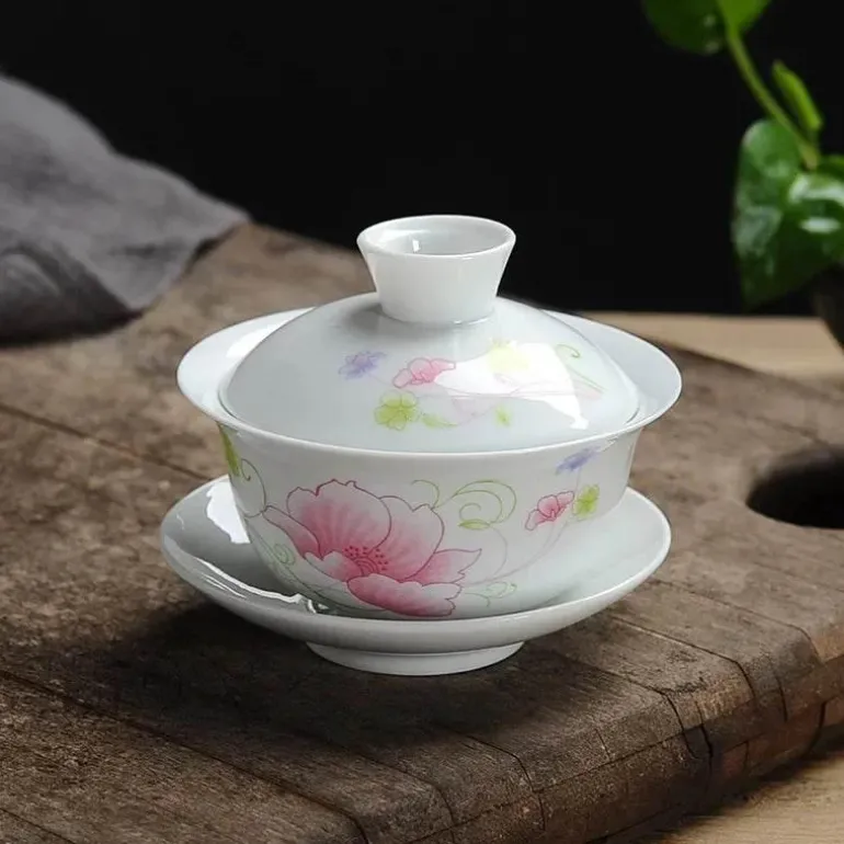Erleben Sie die raffinierte Schönheit des Lotus Gaiwan Teeservices, einer sorgfältig zusammengestellten Kollektion, die Raffinesse und Kunstfertigkeit widerspiegelt. Dieses Teeservice besticht durch exquisite handgezeichnete Lotusmotive und vermittelt ein Gefühl von Ruhe und Anmut, das jeder Teeliebhaber zu schätzen weiß.