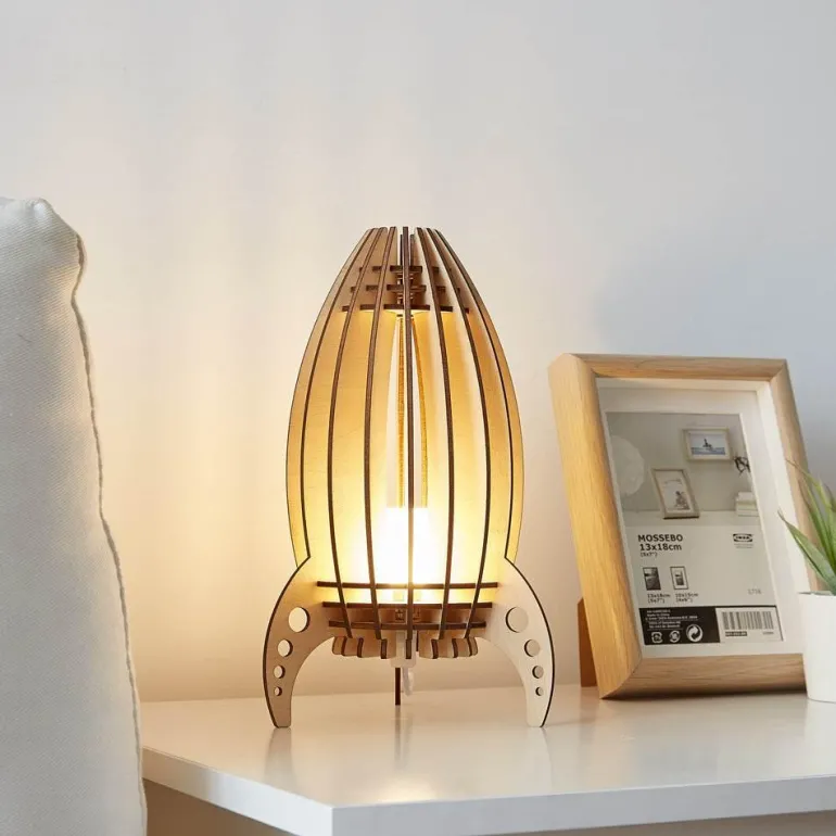 The Lunar Capsule Table Lamp captures the essence of the cosmos, merging modern design with a playful reference to space exploration. Constructed from premium wood, its open-frame design allows light to softly filter through the elegantly curved slats, creating a warm and inviting atmosphere in any room. The unique silhouette not only enhances your decor but also serves as a functional piece of art. Perfect for both contemporary and eclectic spaces, this lamp will illuminate your living areas while igniting curiosity about the wonders of the universe. Embrace the serene glow and stylish design of this decorative lighting solution, ideal for enhancing your home’s ambiance.