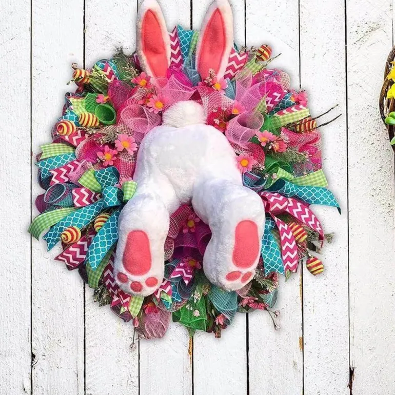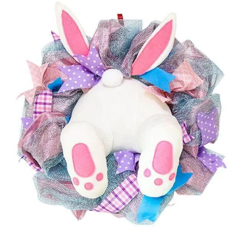 Verschönern Sie Ihren Raum mit diesem entzückenden Frühlings-Türschmuck, der für festliche Stimmung in Ihrem Zuhause sorgt. Dieser bezaubernde künstliche Kranz mit einem niedlichen Hasenmotiv, einem bunten Band und vielen filigranen Ornamenten verleiht Ihrer Einrichtung einen Hauch von Verspieltheit.