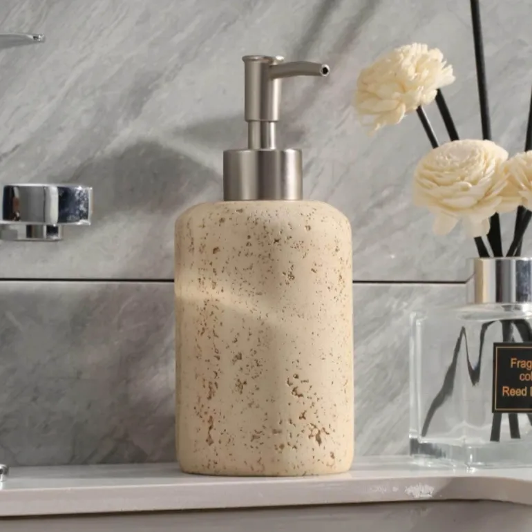 Transform your bathroom into a serene oasis with the Luxe Sandstone Bathroom Collection, a thoughtfully curated selection of bath accessories that seamlessly combines natural beauty with contemporary design. Each piece, from the soap dispenser to the toothbrush holder, is meticulously crafted from premium sandstone, highlighting unique textures and warm tones that infuse your space with an organic essence.