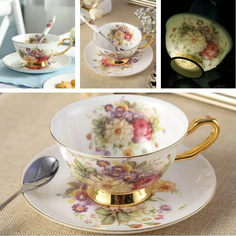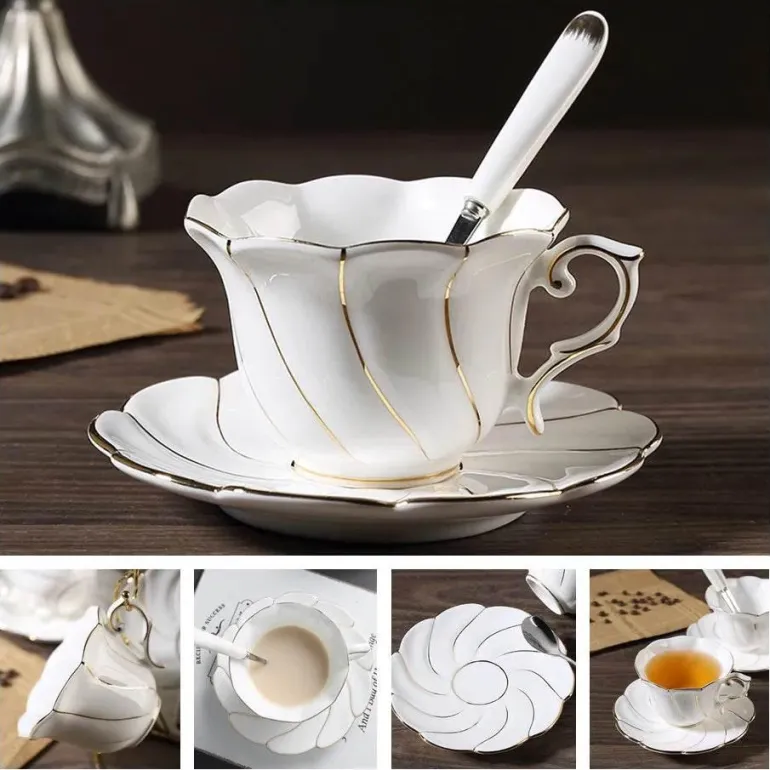 Ob für Ihre tägliche Kaffeezeremonie oder als dekoratives Highlight – dieses Kaffeetassen-Set aus Bone China vereint Funktionalität mit einladendem Charme und verleiht Ihrem Zuhause einen Hauch von Luxus. Genießen Sie Ihr Lieblingsgetränk und erfreuen Sie sich gleichzeitig an der zeitlosen Schönheit dieses elegant gefertigten Stücks.