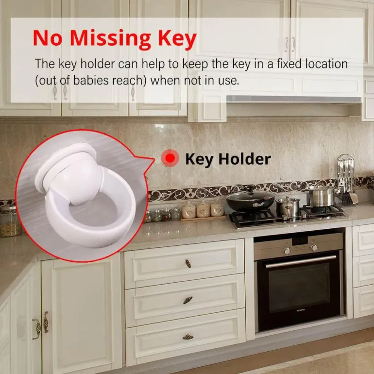 Diese aus robustem Kunststoff gefertigte Kindersicherungslösung ist für jedes Kind geeignet und eignet sich ideal zum Sichern verschiedener Schubladen und Schränke im ganzen Haus.