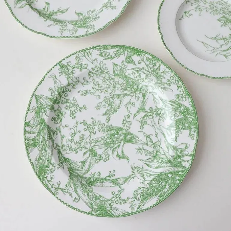 Entdecken Sie die ruhige Eleganz eines ländlichen Essens mit unseren exquisiten Porzellantellern aus der Medieval Pastoral Tableware Kollektion. Das Maiglöckchen-Design ist eine erfrischende Anspielung auf die Natur und verleiht Ihrem Tisch eine heitere Schönheit.
