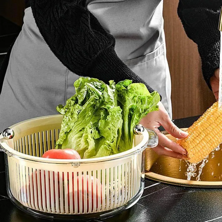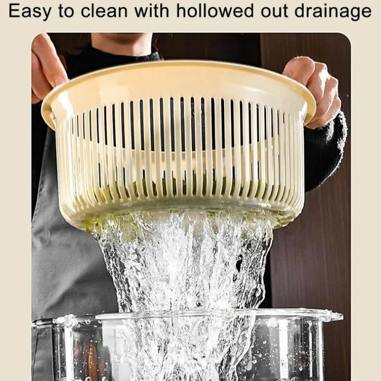 Mit diesem manuellen Gemüseabtropfkorb gehören matschigen Salaten und nassem Gemüse der Vergangenheit an. Dieses unverzichtbare Küchenwerkzeug ist benutzerfreundlich und effizient und entfernt überschüssiges Wasser effektiv von Ihrem frisch gewaschenen Obst und Gemüse. Drehen Sie einfach den Griff und lassen Sie die Zentrifugalkraft ihre Wirkung entfalten. So bleiben Ihre Salate knackig und servierbereit. Das praktische Design macht die Zubereitung einfacher und angenehmer und ist eine wertvolle Ergänzung für Ihre kulinarische Routine.
