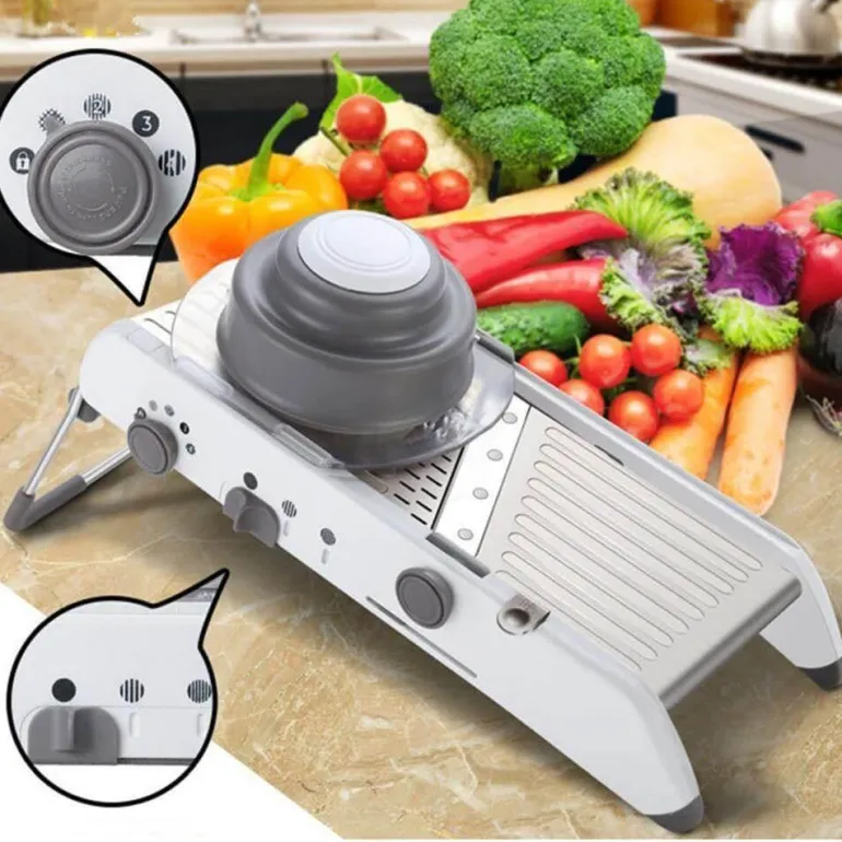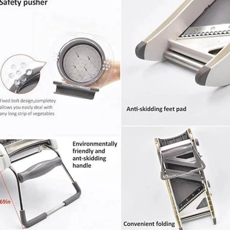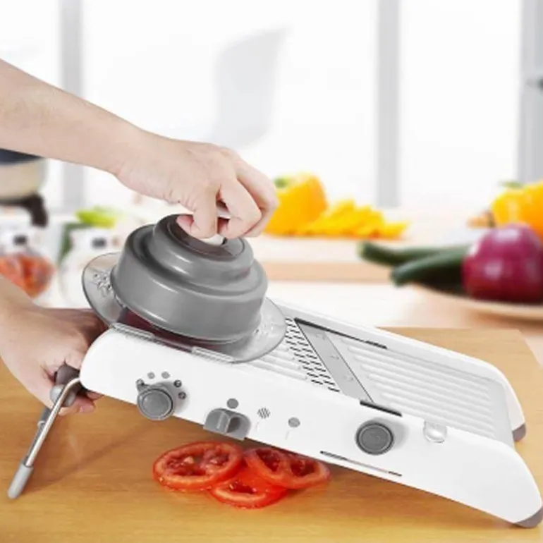 Sicherheit steht bei diesem Allesschneider an erster Stelle. Das innovative Schieberdesign schützt Ihre Hände während des Gebrauchs. Dank der durchdachten Sicherheitsfunktionen können Sie Gemüse sicher und effizient schneiden.