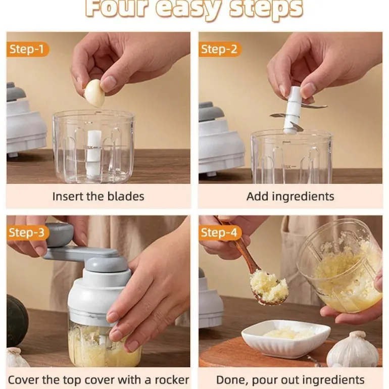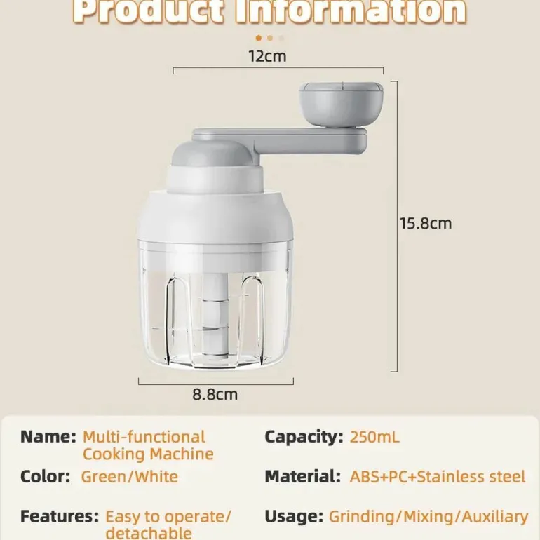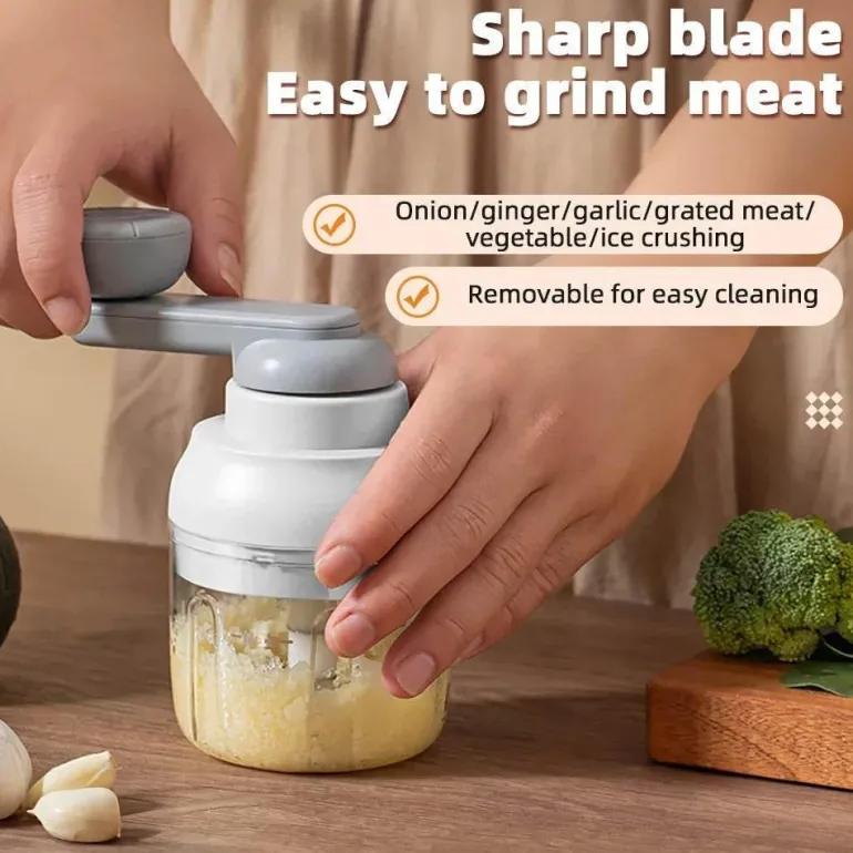 Mit diesem manuellen Knoblauch- und Gemüsehacker erledigen Sie Ihre Küchenvorbereitungen schnell und mühelos. Dieser Handzerkleinerer wurde speziell für das mühelose Zerkleinern von Knoblauch, Gemüse und anderen Zutaten entwickelt und vereinfacht Ihre Kochaufgaben ganz ohne Strom. Der benutzerfreundliche, handbetriebene Mechanismus gibt Ihnen die volle Kontrolle über die Zerkleinerungsgröße, egal ob Sie fein gehackten Knoblauch oder grob gehacktes Gemüse für Ihre Lieblingsgerichte bevorzugen. Kompakt und leicht zu reinigen, vereint dieses Werkzeug Komfort und Effizienz und ist somit eine unverzichtbare Ergänzung für jede Küche.