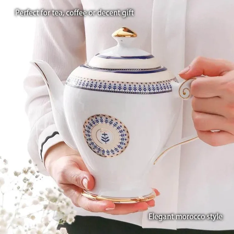 Tauchen Sie ein in die Schönheit und den kulturellen Reichtum dieses marokkanisch inspirierten Porzellan-Teeservices und verwandeln Sie Ihre Teerituale in unvergessliche Anlässe mit einer Kollektion, die Luxus und Tradition an Ihrem Tisch vereint.
