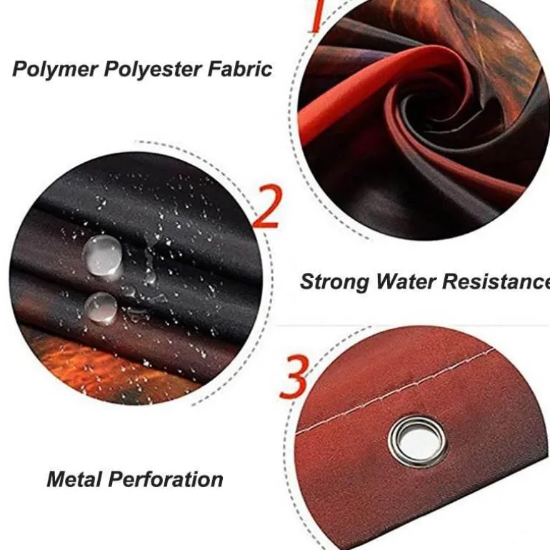 Dieser vielseitige Vorhang ist in mehreren Größen erhältlich – 120 x 175 cm, 180 x 200 cm, 180 x 180 cm und 150 x 180 cm – und eignet sich perfekt für jedes Badezimmer, jede Dusche oder sogar für den Einsatz in Hotels.