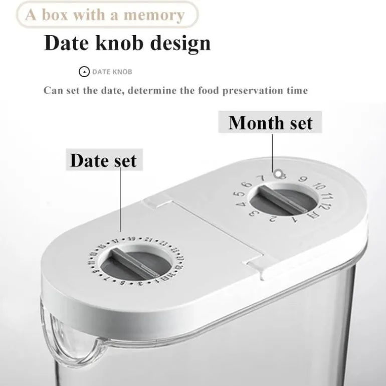Verbessern Sie Ihre Küchenorganisation mit diesem Mehrkorn-Vorratsbehälter, der den Bedürfnissen jeder Familie gerecht wird. Das schlanke und moderne Design verfügt über einen praktischen Drehknopf, mit dem Sie Monat und Datum einstellen können. So vergessen Sie nicht, Ihre gelagerten Lebensmittel für optimale Frische zu drehen. Hergestellt aus BPA-freiem Kunststoff, schützt dieser Behälter die Qualität Ihrer Zutaten und verhindert gleichzeitig Auslaufen.