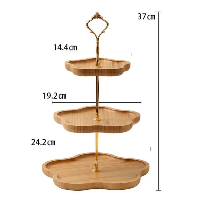 Veredeln Sie Ihre Dessertpräsentation mit unserem mehrstöckigen Tortenständer aus Holz. Er besticht durch seine faszinierende Blumenform mit mehreren Ebenen. Aus robustem Holz gefertigt, präsentiert dieser Ständer nicht nur Ihre köstlichen Leckereien, sondern dient auch als Blickfang für Anlässe wie Hochzeiten, Partys und gemütliche Familienfeiern. Seine natürliche Oberfläche verleiht jedem Tisch eine warme, einladende Atmosphäre und sorgt dafür, dass Ihre Desserts perfekt in Szene gesetzt werden.