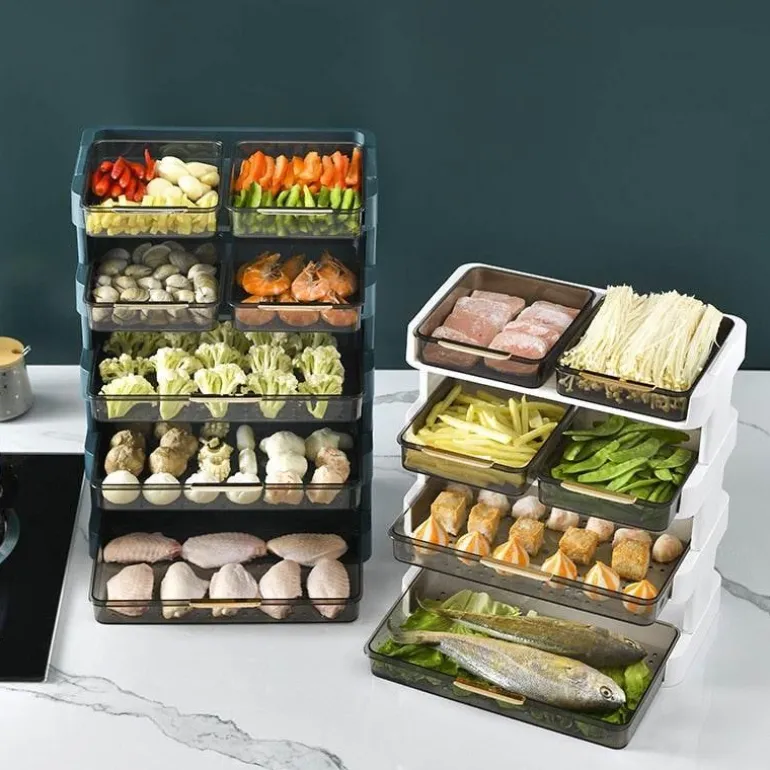 Diese praktische Aufbewahrungslösung aus strapazierfähigem ABS-Material ist in elegantem transparentem Weiß oder transparentem Grün erhältlich. Sie fügt sich nahtlos in Ihre Kücheneinrichtung ein und verleiht ihr gleichzeitig eine moderne Note.