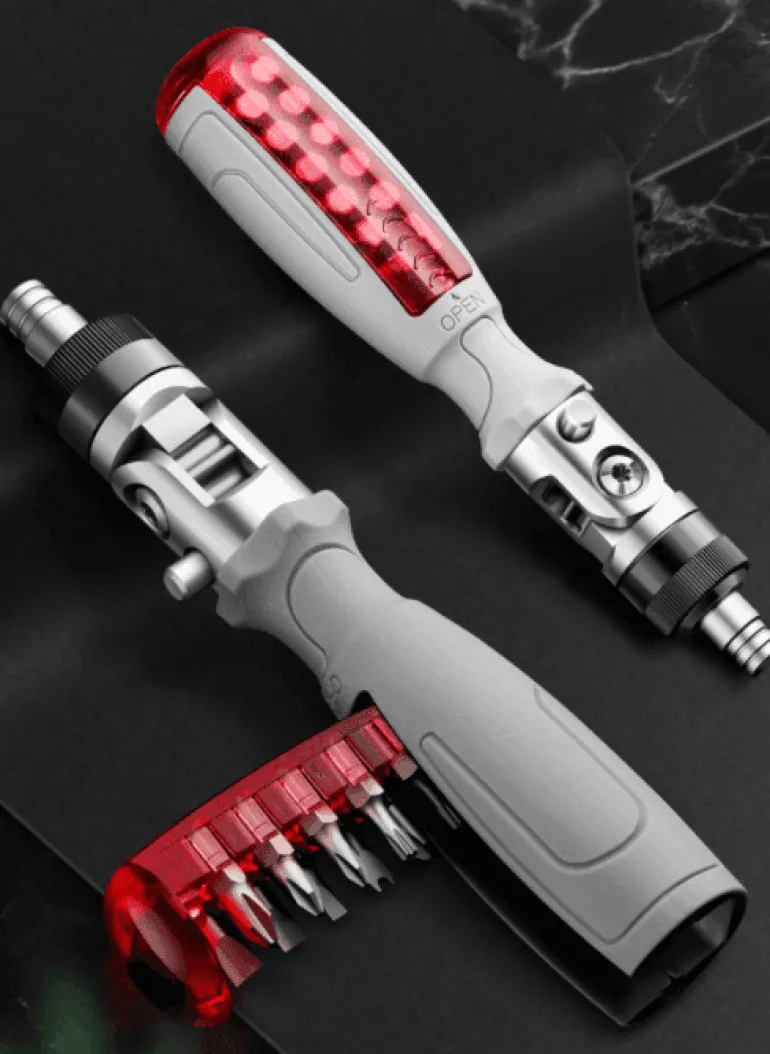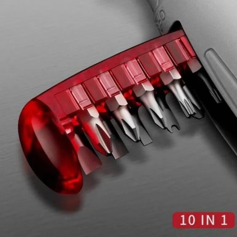 Der ergonomische Gummigriff sorgt für mehr Komfort bei langen Projekten und reduziert die Belastung Ihrer Hände. Erweitern Sie Ihren Werkzeugkasten mit diesem umfassenden elektrischen Mehrwinkel-Schraubendreher-Set, das Ihre Projekte optimiert und die Effizienz steigert.