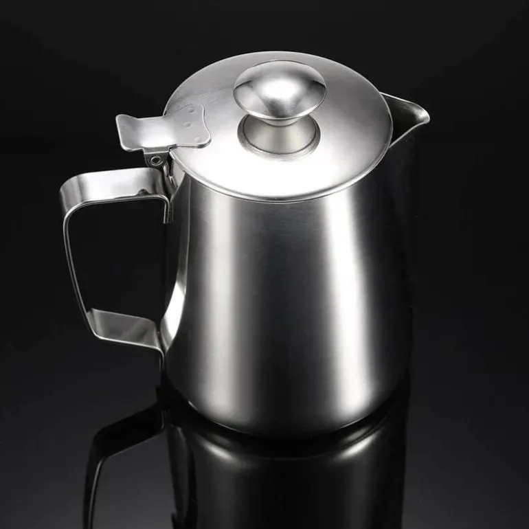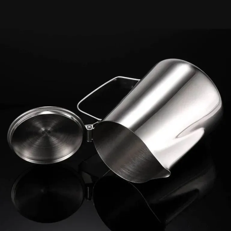 Mit seinem schlanken und modernen Design verleiht dieser Krug jeder Küche oder jedem Café einen Hauch von Eleganz. Der mitgelieferte Deckel trägt entscheidend dazu bei, die ideale Temperatur und Schaumkonsistenz Ihrer Milch zu erhalten und sorgt dafür, dass jede Tasse Kaffee reich an Geschmack und angenehmer Konsistenz ist.