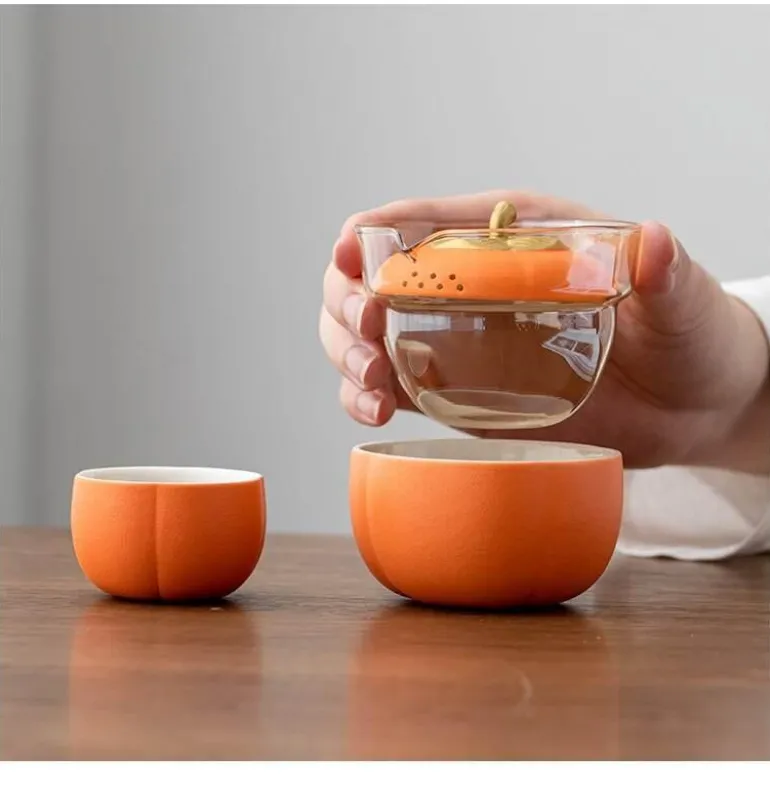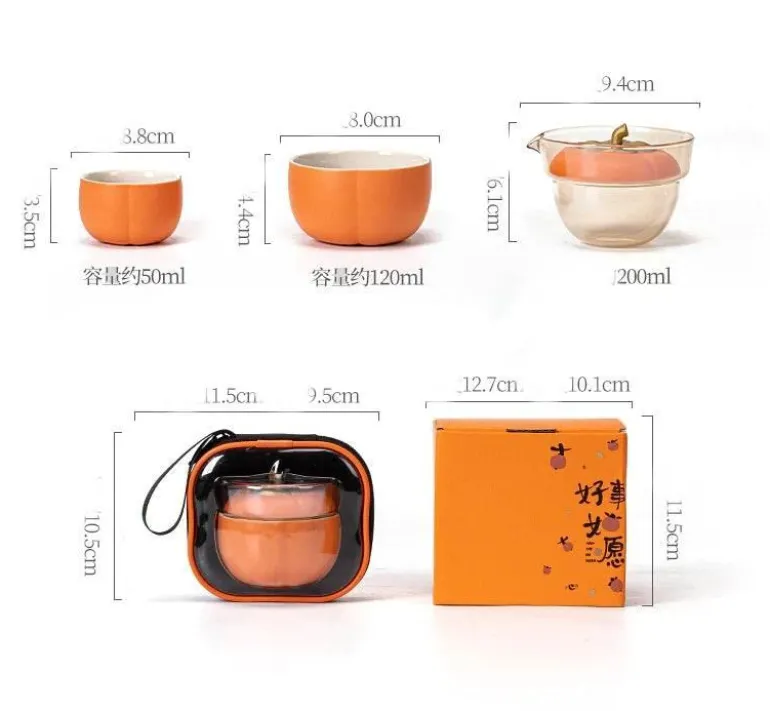 – 1x Mini-Kürbis-Teekannen-Set aus Keramik