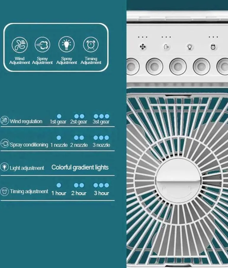 1 Mini-Luftkühler-Ventilator mit Sprühnebelfunktion