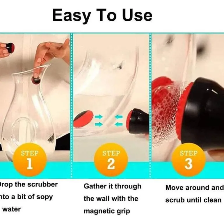 * Stecken Sie einfach eine Hälfte der Bürste in den Behälter; der magnetische Griff hält sie sicher fest, während Sie das Innere reiben und reinigen.