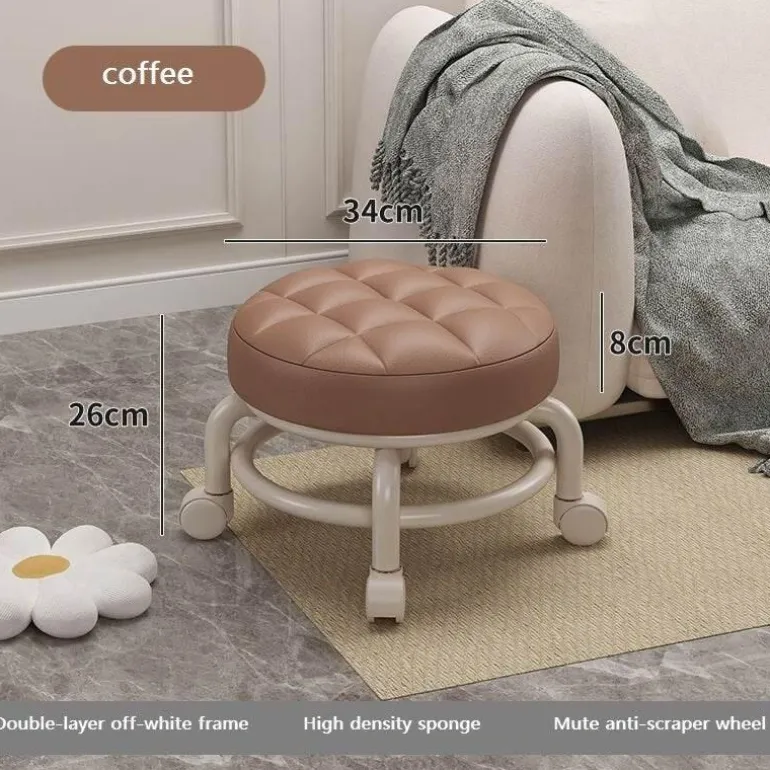 With its refined aesthetic and smooth-rolling wheels, this stool not only enhances the visual appeal of your living area but also ensures easy mobility. Its thoughtful design makes it a flexible addition to your home decor.