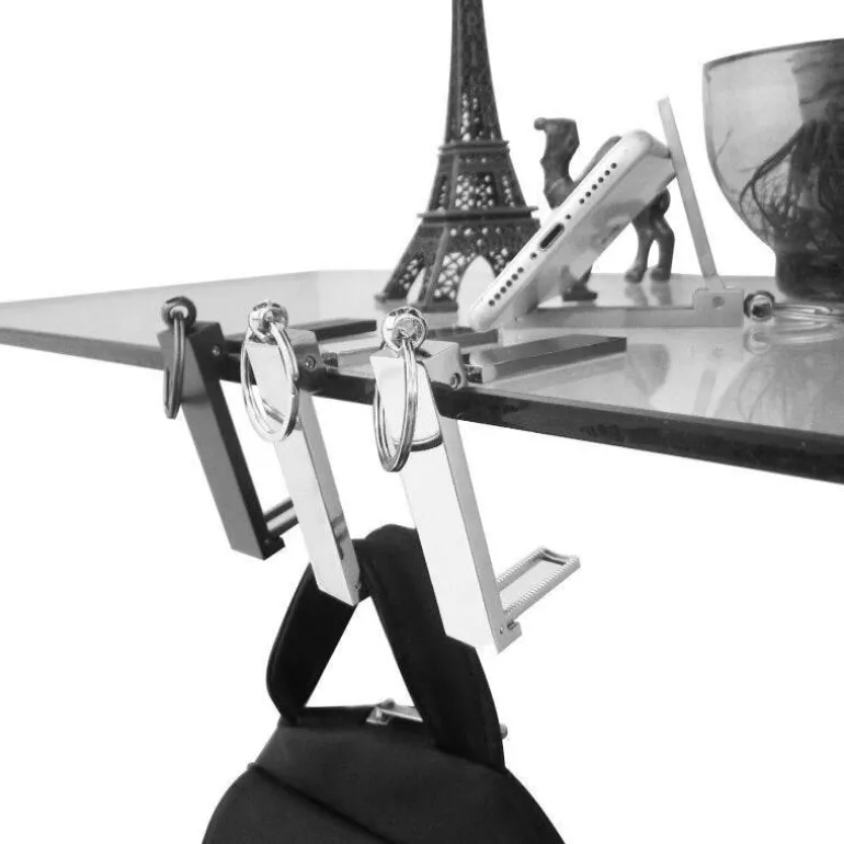 Dieser vielseitige und faltbare Haken dient nicht nur als Handtaschenhalter, sondern auch als Handyhalter und sorgt dafür, dass Sie überall organisiert und verbunden bleiben. Der Mini-Handyhalter aus robustem Edelstahl trägt ein Gewicht von bis zu 4 kg und gewährleistet so Zuverlässigkeit im täglichen Gebrauch.