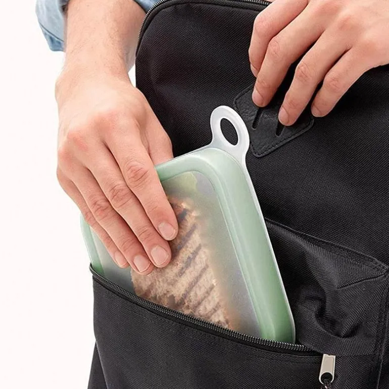Genießen Sie Ihre Lieblingssandwiches unterwegs mit unserer umweltfreundlichen, wiederverwendbaren Sandwichbox. Diese praktische Lunchbox aus lebensmittelechtem Silikon ist luftdicht verschlossen und sorgt dafür, dass Ihr Sandwich den ganzen Tag über frisch und lecker bleibt.