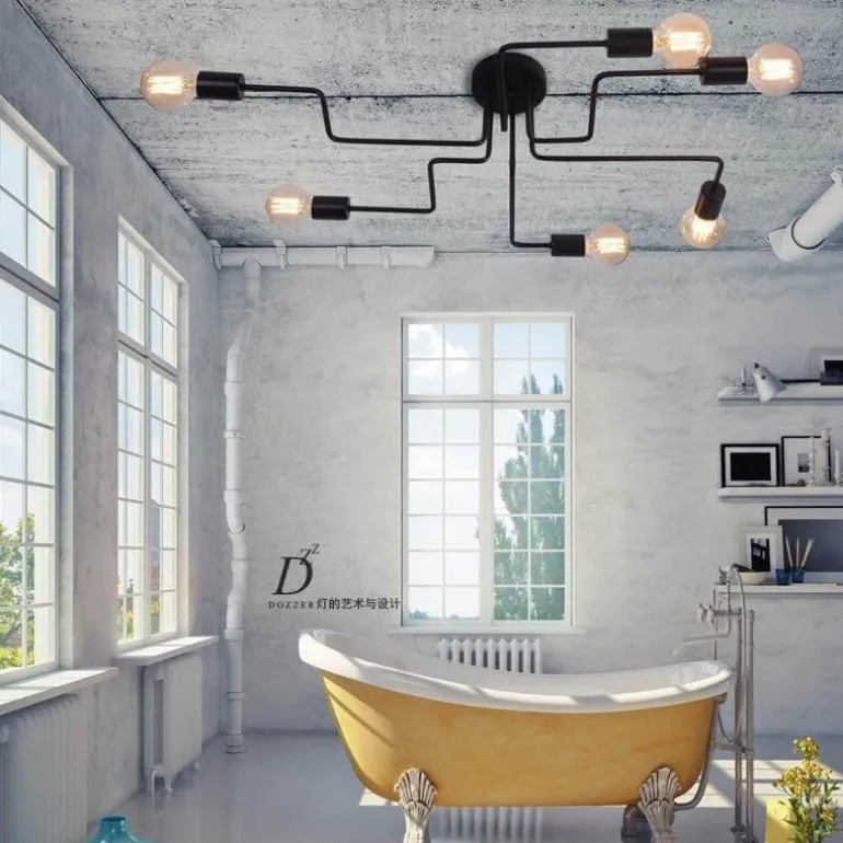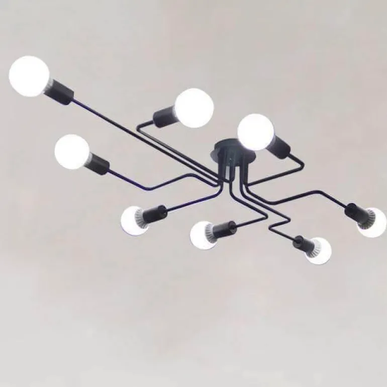 Elevate your space with this industrial wrought iron chandelier, designed to blend functionality with style and add retro charm to your interiors. This semi-flush mount ceiling light features a clean, minimalist design that makes it an excellent choice for those looking to introduce an urban touch to their home.