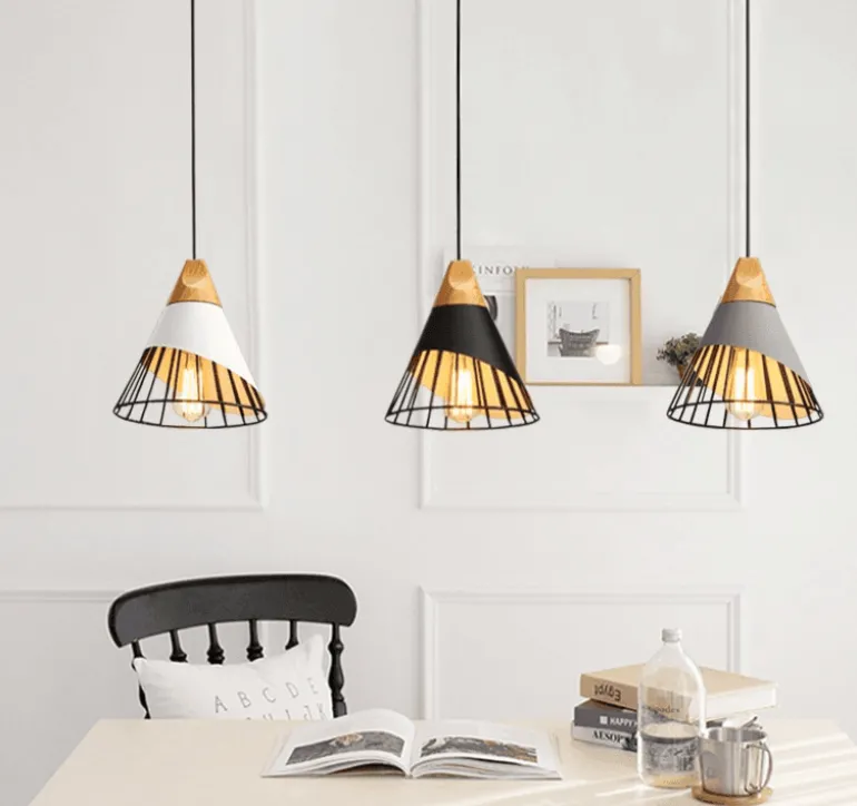 Introducing a stunning modern pendant light that not only brightens up your space with vibrant colors but also enhances your decor with its artistic design. This stylish lighting fixture combines metal and wood for a contemporary look, making it perfect for hallways, stairwells, restaurants, hotels, motels, or any room where you want to create a welcoming ambiance.