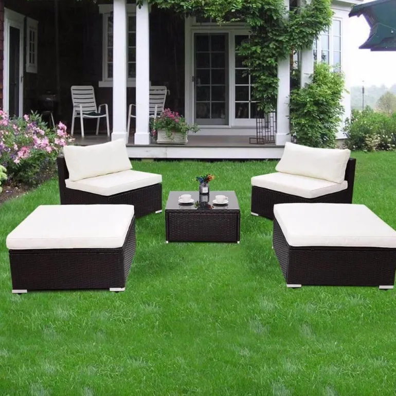 Dank der abnehmbaren Kissenbezüge ist die Reinigung ein Kinderspiel. Sie sorgen dafür, dass Ihre Möbel frisch und einladend aussehen. Dieses vielseitige Set ist ideal für Gärten, Terrassen, Hinterhöfe und jeden Außenbereich, in dem Sie sich entspannen möchten.