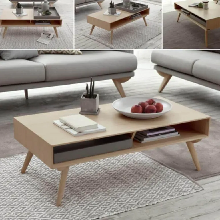 Dieser vielseitige Couchtisch bietet nicht nur eine praktische Ablagefläche für Getränke und Dekoration, sondern ist auch ein faszinierender Blickfang in Ihrem Zuhause. Seine robuste Konstruktion sorgt für lange Haltbarkeit, während die sorgfältige Verarbeitung die einzigartige Maserung der Eiche hervorhebt. Werten Sie Ihre Inneneinrichtung mit diesem raffinierten und zugleich dezenten Stück auf, das durchdacht gestaltet ist, um zu verschiedenen Stilen zu passen und Ihr tägliches Wohnerlebnis zu bereichern.