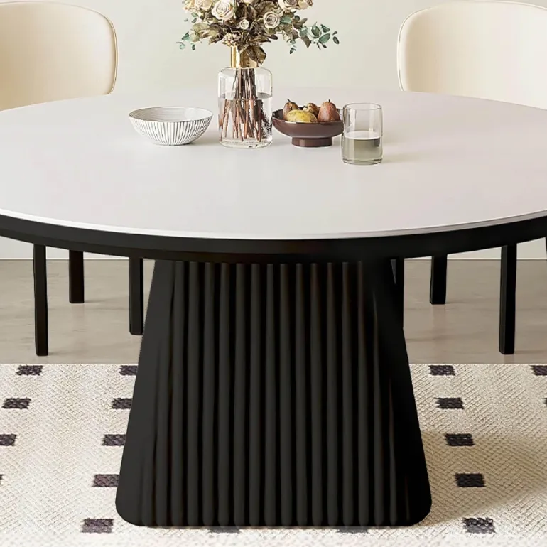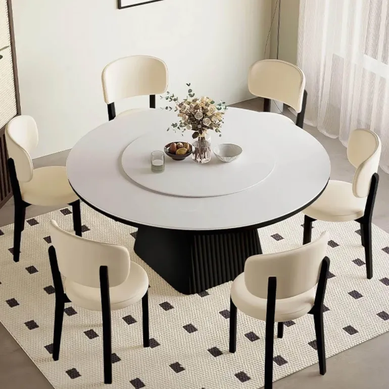 Mit seinen klaren Linien wertet dieser Tisch die Ästhetik Ihres Essbereichs auf, ohne dabei an Stabilität oder Langlebigkeit einzubüßen. Ein innovativer Drehbereich sorgt für vielseitige Funktionalität und ermöglicht Ihnen, den Tisch mühelos an verschiedene Esssituationen anzupassen – egal, ob Sie ein gemütliches Familienessen genießen oder ein geselliges Treffen mit Freunden veranstalten.